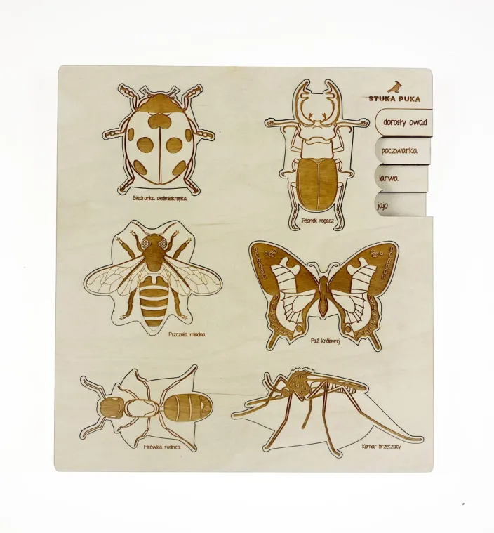 Dieses zauberhafte Puzzle ist nicht nur sehr hübsch: Der Spielspaß hat einen tollen Lerneffekt für Ihre Kinder, die die fantastische Welt der Insekten entdecken können. So können Ihre Kinder beobachten, wie sich Insekten im Laufe ihres Lebens in vier Entwicklungsstadien entwickeln. Abgesehen von dem Verständnis über die umgebene Natur, wird auch die Feinmotorik Ihres Kindes gefördert. Die perfekte Beschäftigungsmöglichkeit für gemeinsame Zeit!