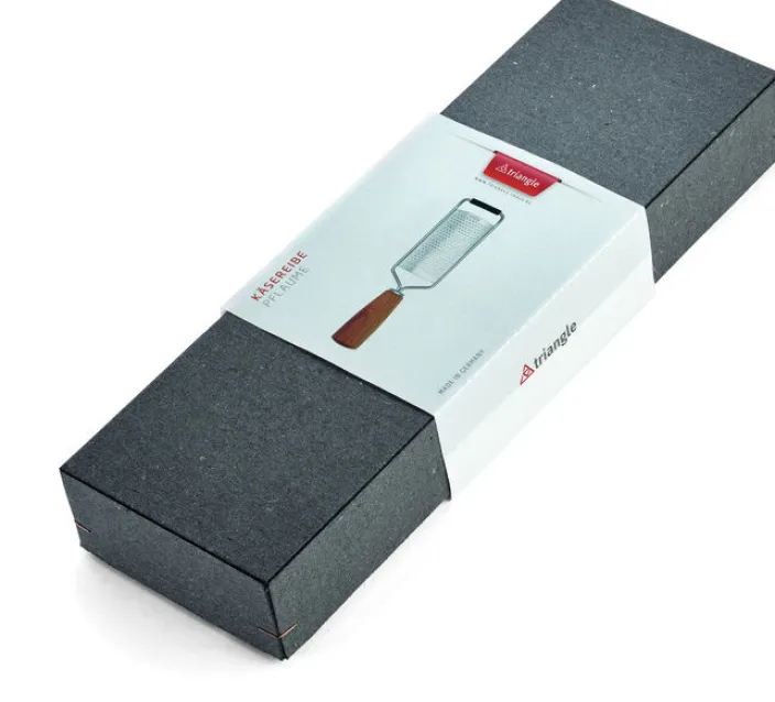 Hochwertige Käsereibe »Soul« hergestellt im besonderen Photoetching-Verfahren für dauerhaft scharfe Reibflächen. Für Soul verwendet triangle Hölzer von regionalen Obstwiesen und Wäldern und unterstützt damit eine nachhaltige Holzwirtschaft und kurze Transportwege. Die Griffe werden im Sauerland gedrechselt, anschließend in Solingen fein bearbeitet und mit Funktionsteilen aus Edelstahl konfektioniert. Soul Produkte werden in einem stilvollen und wiederverwendbaren Geschenkkarton geliefert.