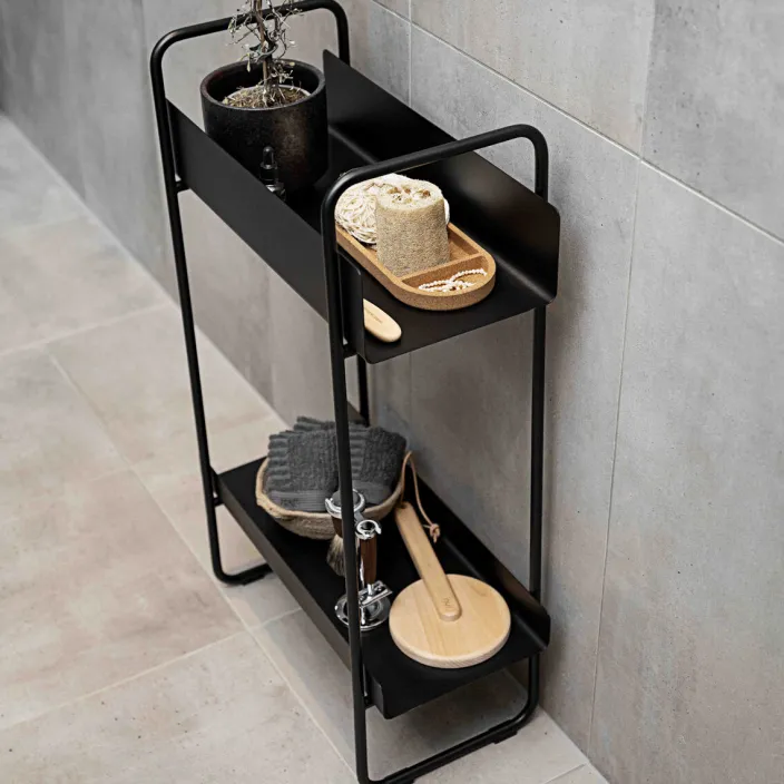 Verschönern Sie eine Ecke im Wohnzimmer, auf dem Balkon oder begrüßen Sie Gäste auf reizvolle Weise im Flur. Der schmale Konsolentisch aus pulverbeschichtetem Metall passt in die meisten Räume, auch dann, wenn die Bodenfläche knapp ist. Er wird mit zwei Ablagen geliefert, die Sie ganz nach Belieben und Bedarf platzieren können. Die eine Ablage hat eine hohe Kante für Handtücher, Mützen/Handschuhe, Hundeleinen oder was auch immer Sie benötigen. Sie eignet sich auch besonders gut als dekorativer Pflanztisch.