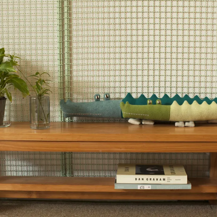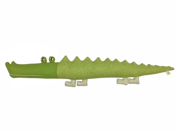 Das freundliche, handgemachte Krokodil Matt ist aus Stoffen einer Traditionsweberei in Portugal hergestellt und dient als kleiner und großer Blickfang in jedem Zimmer.