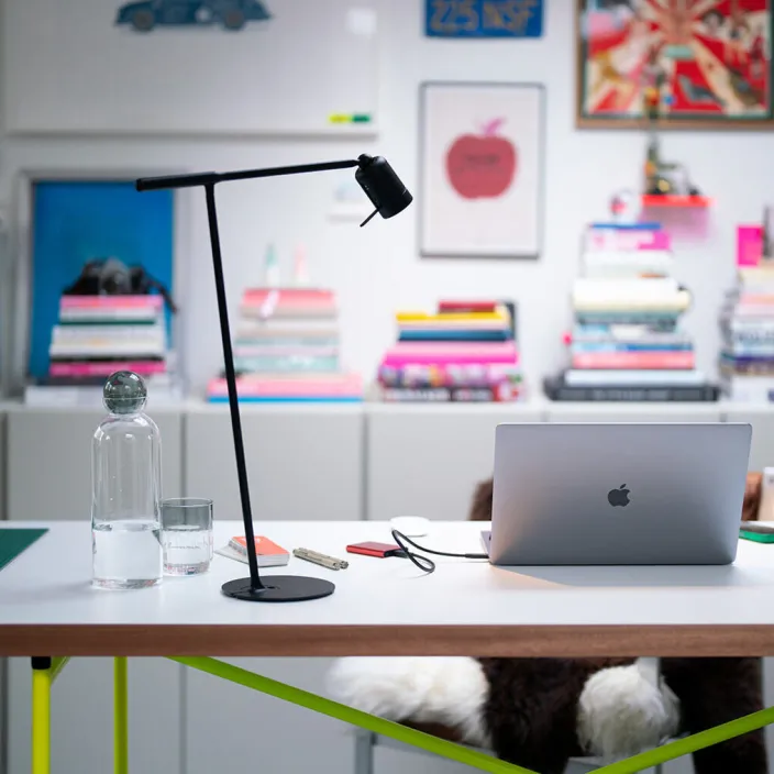 Die Desk Fixture ist ein 58 cm hoher Ständer aus Aluminium und Stahl, der den »ONE« Leuchtenkopf trägt und auf Schreibtischen, Schränken oder Esstischen genutzt werden kann sodass Sie sich voll und ganz auf Ihre Arbeit konzentrieren können. Eine magnetische Halterung ermöglicht eine flexible Ausrichtung der Lampe.