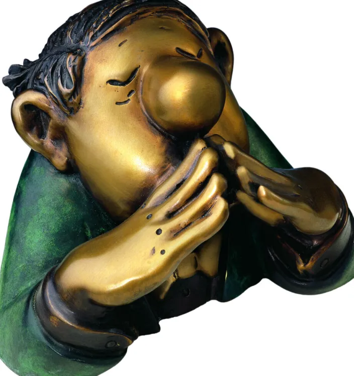 Mit sicherem Gespür schaute Loriot den Menschen auf die Finger. Gerade die Darstellung der kleinen, ganz natürlichen Schwächen macht Loriots Charaktere so unwiderstehlich sympathisch. Ganz in diesem Sinne sind seine »Drei Charakterköpfe« gestaltet. Nicht von ungefähr erinnern sie an die »drei Weisen« und sind doch typisch Loriot: »Der Kenner«, der eigentlich nicht sprechen sollte, flüstert unter vorgehaltenen Händen. »Der Träumer« tut so, als würde er nichts hören, lauscht aber mit einem Ohr heimlich doch. Und »Der Optimist« hält zwar die Hand vor die Augen, linst aber zwischen den Fingern hindurch. Wahlweise einzeln oder im Set erhältlich.