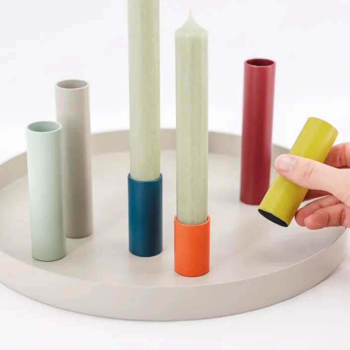 Mit dem magnetischen Kerzenhalter »Luna« von Remember stehen Ihnen unendlich viele Kombinationsmöglichkeiten zur Verfügung. Die 6 farbigen Magnet-Kerzenhalter können auf dem Tablett immer wieder neu arrangiert und in Ihre Dekoration integriert werden. Ob schlicht oder jahreszeitlich dekoriert – das pure Design aus pulverbeschichtetem Metall lässt jede Menge Gestaltungsspielraum.
