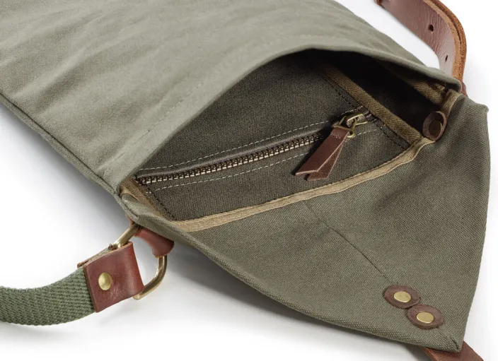 - Material: gewachste Baumwolle und pflanzlich gegerbtes Rindleder