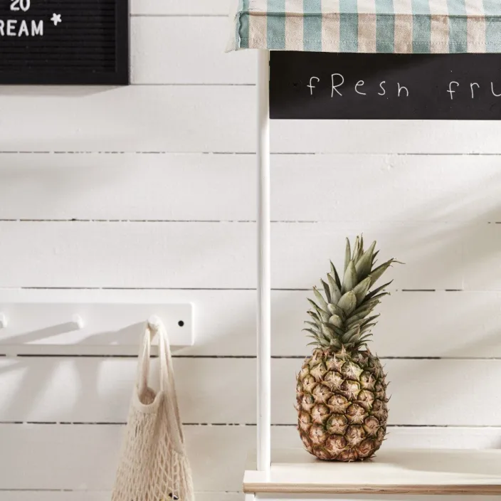 Auch in Zeiten der Supermärkte hat das Spiel mit einem klassischen Kaufmannsladen nicht an Beliebtheit verloren. Mit dem hübschen Marktstand der skandinavischen Marke Kids Concept können Ihre Kleinen sich als Verkäufer und Verkäuferinnen ausprobieren. In zwei Regale mit sechs Fächern und an den zwei Haken zum Aufhängen können die Kleinen zum Beispiel Obst und Gemüse anbieten – der Preis findet auf Tafel zum Beschriften Platz. „Darf es ein noch etwas sein?“ Da können Mama und Papa doch bestimmt nicht Nein sagen!