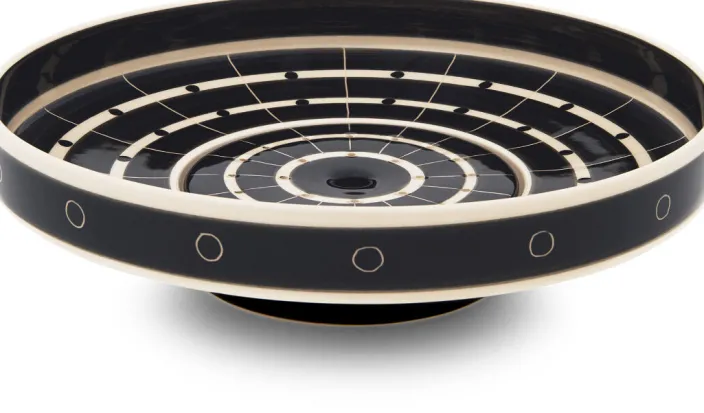 Gefertigt wird die Schale auch heute noch in Handarbeit in den Hedwig Bollhagen Werkstätten für Keramik. Mit schwarzer Engobe wird auf den reinen Tonscherben das von Hedwig Bollhagen entwickelte Originaldekor aufgetragen, durch Scraffitotechnik verfeinert und transparent glasiert. Die Hedwig Bollhagen Werkstätten für Keramik ist die einzige direkt aus dem Bauhaus hervorgegangene Manufaktur, die Design-Keramik mit Originalformen herstellt und neu interpretiert.