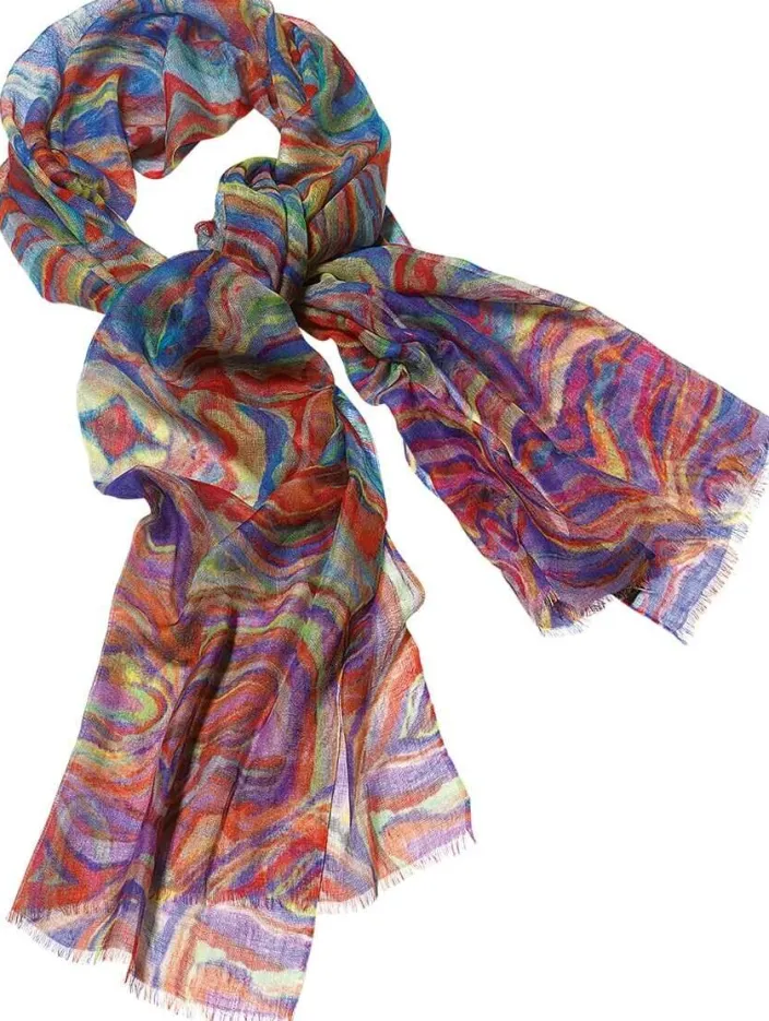 Sommerlich leicht, schön wie ein Regenbogen und durch seine Farbenvielfalt zu jedem Outfit passend ist dieser sehr hochwertige Pashmina-Schal. Auf handbetriebenen Maschinen gewebt aus 60% Wolle und 40% Seide.
