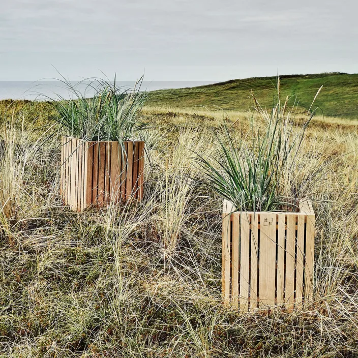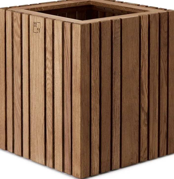 Gestalten Sie Ihren Raum oder Garten mit »GrowBIG«, einem kubischen handgefertigten Pflanzgefäß aus edlem Eichenholz mit schlichten, vertikalen Planken. Bringen Sie echte Waldstimmung in Ihren Innen- oder Außenraum.