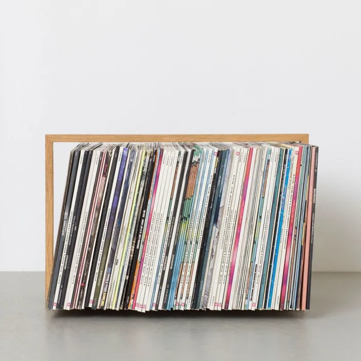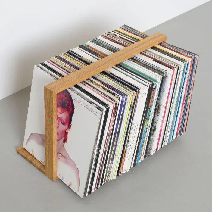 Zeitlos, individuell und in Handarbeit gefertigt. Der Schallplattenständer »b-seite« bietet wahlweise Platz für über 50 oder 110 Schallplatten Ihrer Wahl und setzt sie wirkungsvoll in Szene. Hier stehen sie gut sortiert und immer griffbereit. Das Holzregal ist komplett aus Eiche gefertigt und der Rahmen des Plattenständers auf Gehrung gearbeitet. Er lagert auf einer massiven Holzplatte, die der luftigen Konstruktion die nötige Schwere für einen festen Stand gibt.