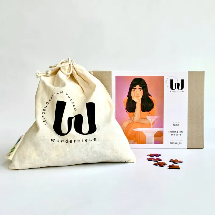 Tauchen Sie in die faszinierende Welt von »Staring into the Void« ein. Dieses einzigartige 1000-Teile-Puzzle der Künstlerin Elif Küçük fordert Geduld und Konzentration und bietet gleichzeitig ein ästhetisches, meditatives Erlebnis.
