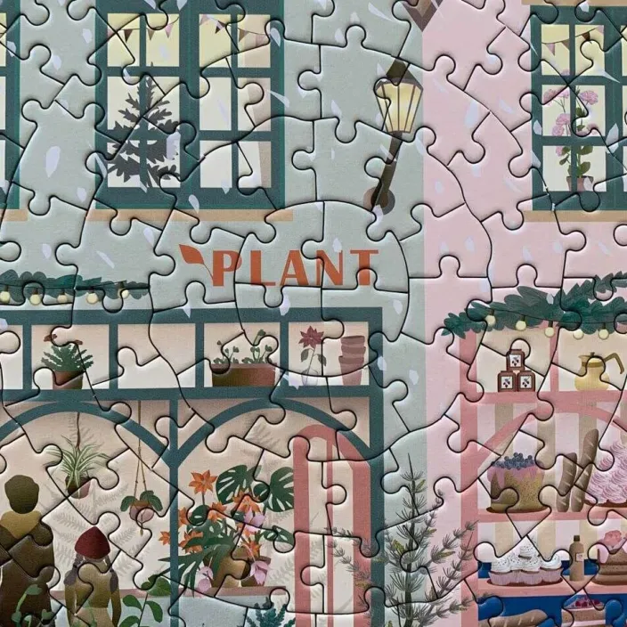 Das Puzzle »Weiße Weihnacht« (Ø 65 cm) fängt die magische Stimmung der festlichen Jahreszeit perfekt ein. Der Schnee fällt sanft über die kleine Stadt, während die Bewohner die letzten Vorbereitungen für das Fest treffen: Weihnachtsbäume werden ausgesucht, Geschenke liebevoll verpackt und die letzten süßen Leckereien eingekauft. Die winterliche Szenerie vermittelt pure Vorfreude und weihnachtliche Gemütlichkeit. Mit jedem Puzzleteil erwacht die zauberhafte Atmosphäre einer verschneiten Stadt zum Leben und erfüllt Ihr Zuhause mit dem Charme einer weißen Weihnacht.
