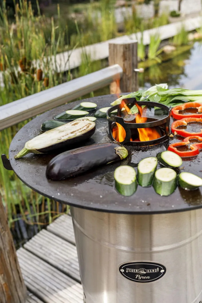 Die »Pyron« Plate von Feuerhand ist die perfekte Ergänzung zur »Pyron« Feuertonne. Sie bietet Ihnen unvergessliche Genussmomente beim Grillerlebnis im Plancha Style.