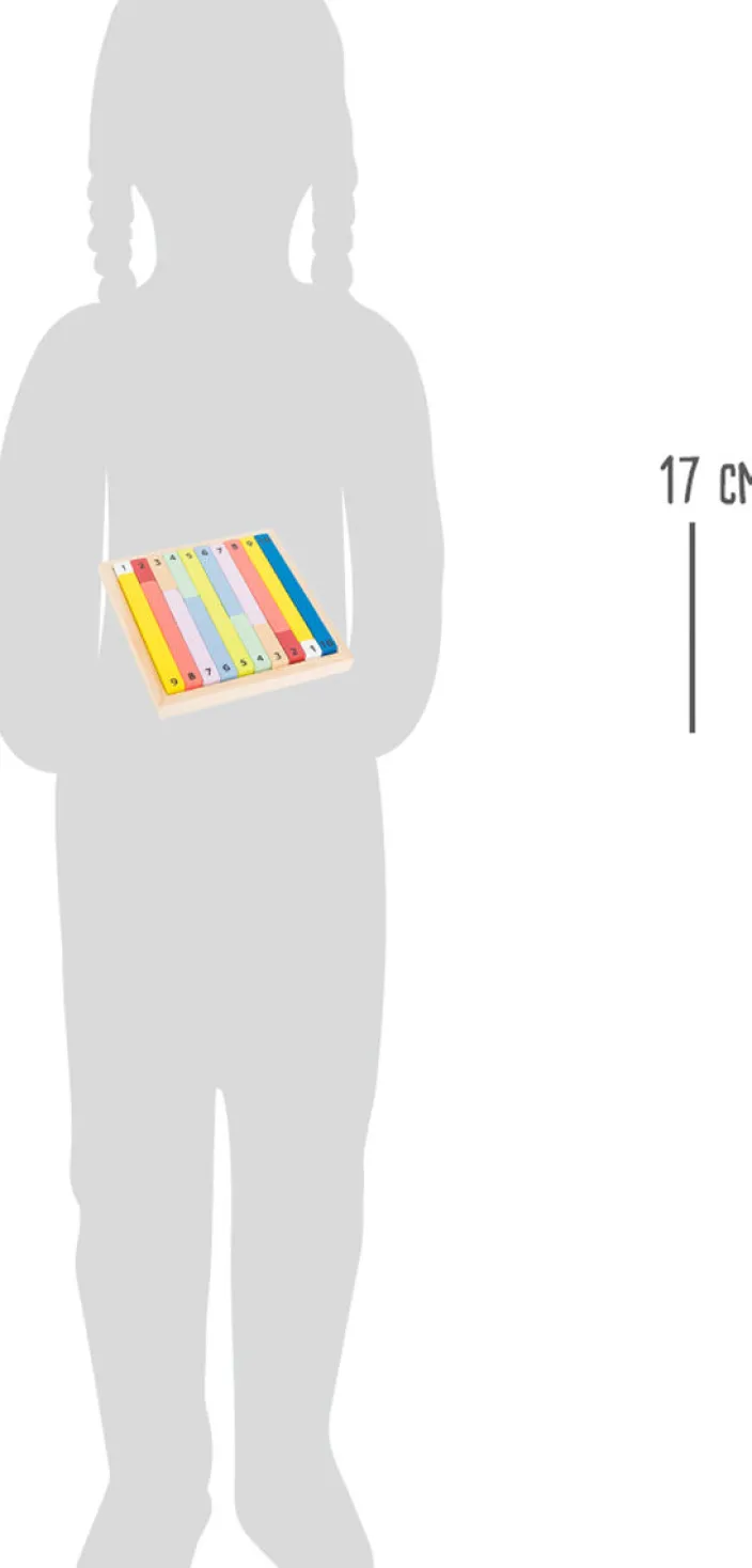 Lernen kann Spaß machen! Diese 19 Rechenstäbchen und der praktische Holzrahmen aus FSC® 100%-zertifiziertem Holz sind ideale Begleiter für Schulkinder. Sie vermitteln schnell und anschaulich ein Zahlenverständnis. Ist zehn größer als drei? Die Länge des Stäbchens dient dabei als Orientierung. Richtig angeordnet sind alle Rechenstäbchen wieder gut im Rahmen verstaut.