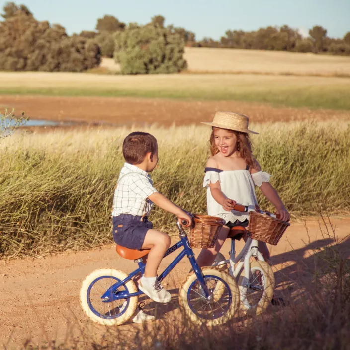 Mit dem schicken Laufrad im Retrodesign von Banwood lernen Kinder, was sie später zum Radfahren brauchen: Gleichgewichtssinn und Koordination. Im abnehmbaren Weidekorb können die Kleinen ihre Lieblingsspielzeuge mit auf den Spielplatz und auf Ausflüge nehmen – ganz wie die Großen. Geeignet ist das Laufrad für Kinder ab zweieinhalb Jahren, Sitz- und Lenkerhöhe wachsen sogar mit. Und sollte der Anstieg mal zu schwierig werden – kein Problem: Durch das geringe Gewicht lässt sich das Laufrad auch ganz leicht tragen.