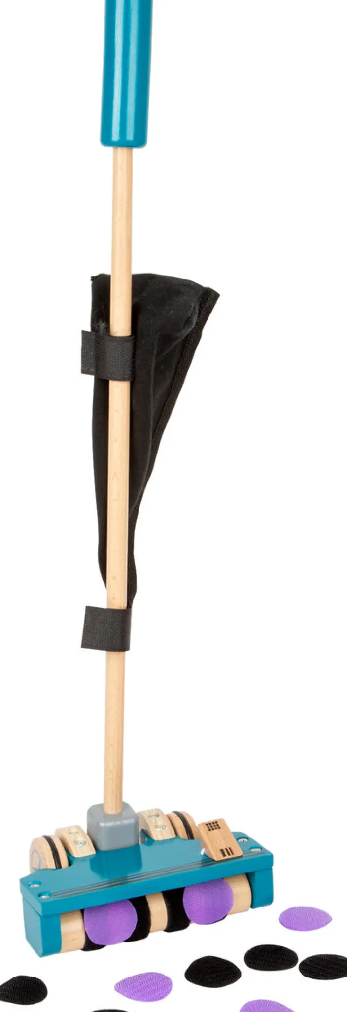 Der vielseitige »Schiebespielzeug Staubsauger« aus hochwertigem Holz kombiniert Spielspaß und Lernförderung in einem. Durch seine Funktionen als Schiebe- und Rollenspielzeug regt er die kindliche Fantasie an und dient gleichzeitig als unterstützende Gehhilfe für die ersten Schritte. Das authentische Spielerlebnis wird durch Flauschstreifen verstärkt, indem Schmutz in Form von Klettpunkten „aufgesaugt“ werden. Die mit Klettverschluss versehene Auffangtasche bewahrt die bunten Klettpunkte sicher auf. Die gummierten Räder gewährleisten geräuschloses Rollen und verhindern ein ungewolltes Wegrutschen. Nach dem Spielen lässt sich das Spielzeuggerät platzsparend aufbewahren. Die farbigen Klettpunkte sind gut sichtbar und bieten auf verschiedenen Fußböden ein realistisches Spielerlebnis. Dieser Spielzeug-Staubsauger macht Ihre kleinen Liebsten startklar für abenteuerliche und spaßige Hausputzaktionen.