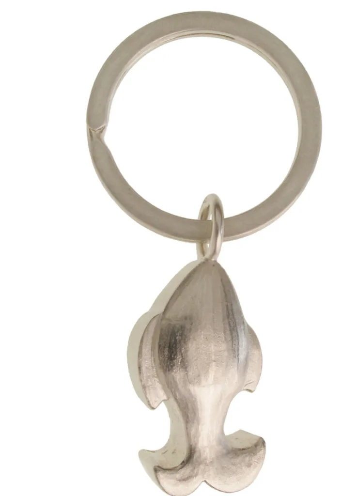 Von Hand gefertigt im Hamburger Atelier der Goldschmiedin Anke Gralfs, setzt dieser Schlüsselanhänger aus massivem Silber ein echtes Statement und eignet sich perfekt als Geschenk für eine ganz besondere Freundin oder Freund.