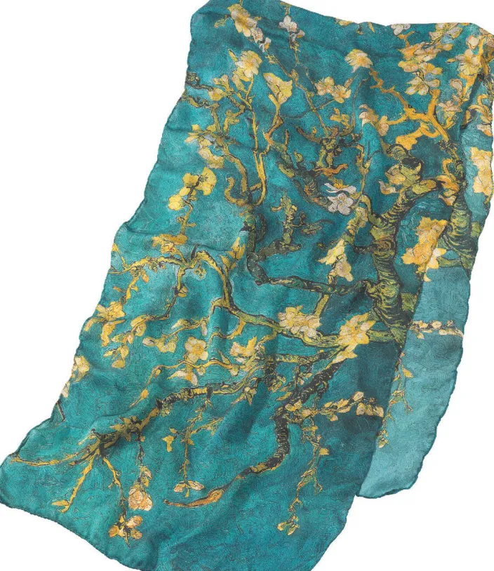 Van Goghs schönes Motiv mit den zarten Mandelblüten verleiht diesem Schal eine frühlingshafte Note. Ein blumiger Blickfang aus 100 % reine Seide.