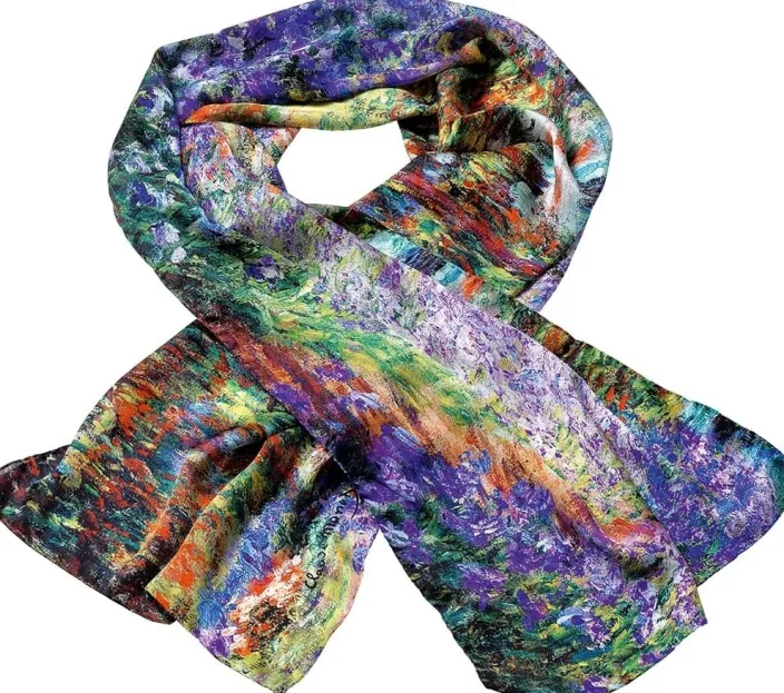 Ein Blumenmeer aus Seide. Der wunderschöne farbenfrohe Schal ist dem Werk »Irisbeet in Monets Garten« von 1900 nachempfunden. Für Liebhaberinnen des Impressionismus ein Muss.