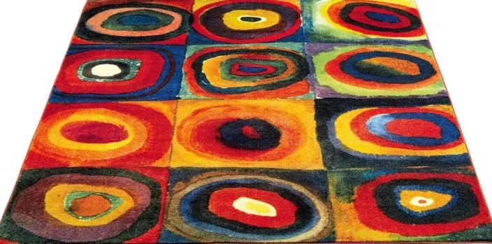 Eines der bekanntesten Werke Kandinskys, adaptiert auf einen getufteten Teppich aus hochwertiger Kunstfaser. Rückseite aus Filz, mit eingefasstem Teppichband.