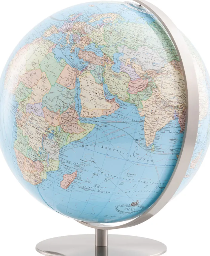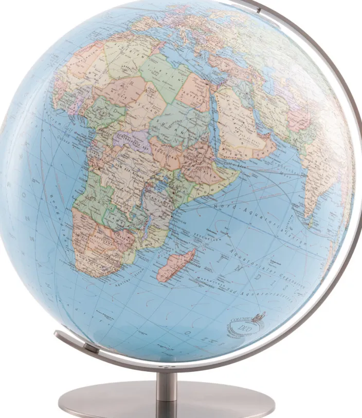 Die klassisch elegante, puristisch funktionelle Basis erhält ihren matten Glanz durch ein spezielles Edelstahlfinish. Diese handwerklich meisterhafte Fertigung macht Ihren Globus zu einem Ausdruck besonderer Lebensqualität, der Ihnen jahrzehntelang Freude bereiten wird.