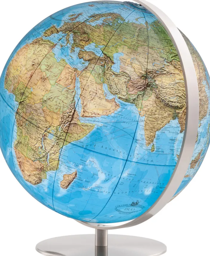 Seit über 70 Jahren steht der DUO für das Zwei-in-Einem-Prinzip: Unbeleuchtet zeigt er übersichtlich die Länder, und beleuchtet offenbart er detaillierte Topografie und dreidimensional wirkende Erhebungen. Der hochwertige Druck im 120er Feinraster-Verfahren sorgt für kristallklare Schriften und scharfe Details, einschließlich Bahn- und Schifffahrtsrouten sowie kalter und warmer Meeresströmungen. Das Ergebnis: hervorragende Lesbarkeit und Farbtreue.