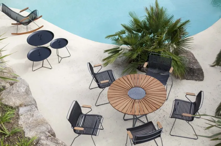 Dieser grafisch schöne, elegante Beistelltisch kann auf viele verschiedene Arten verwendet werden – einzeln oder in Kombination. Die »Eyelet«-Tische sind leicht dorthin zu bewegen, wo sie gebraucht werden – sowohl im Innen- als auch im Außenbereich. Der »Eyelet«-Beistelltisch verfügt über ein spezielles Abflusssystem, das den Beistelltisch nach einem Regenschauer frei von Wasser hält. »Eyelet« ist aus pulverbeschichtetem Metall gefertigt.