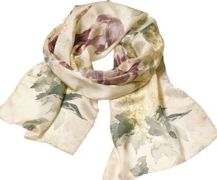 Der farbenfrohe Schal ist Édouard Manets Gemälde »Flower Piece with Iris, Laburnum and Geranium« von 1880 nachempfunden.