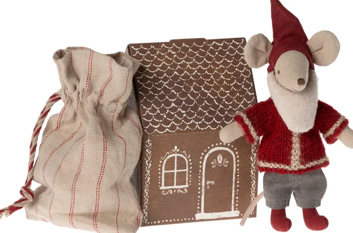 Die Maus ist als Weihnachtsmann gekleidet. Er wohnt in einem kleinen Haus und hat einen Sack für Geschenke, die er in der Weihnachtsnacht ausliefert. Er freut sich darauf, die Feiertage mit den Kleinen zu verbringen und ihnen ein Lächeln ins Gesicht zu zaubern.