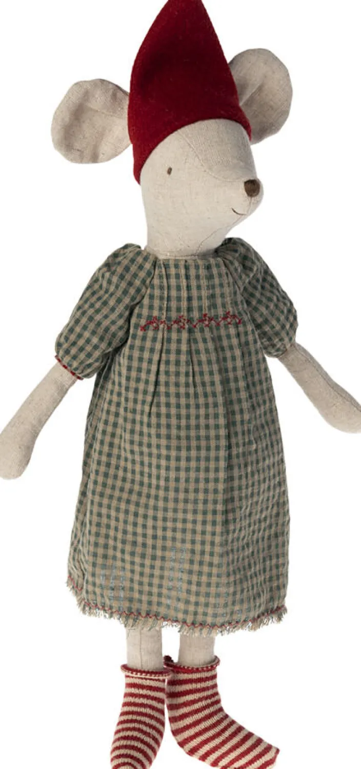 Die Maileg Weihnachtsmaus in Größe Medium ist die perfekte Ergänzung für eine festliche Weihnachtszeit. Gekleidet in einem niedlichen karierten Kleid, rot-weiß gestreiften Socken und einer abnehmbaren roten Weihnachtsmütze, bringt sie sofort Weihnachtsstimmung in jedes Zuhause. Ob als liebevolle Dekoration oder als Spielgefährtin – diese charmante Maus fügt sich wunderbar in jede weihnachtliche Atmosphäre ein. Mit ihrem abnehmbaren Hut kann sie das ganze Jahr über Freude bereiten. Liebevoll gestaltet, verkörpert die Maus den einzigartigen Charme des dänischen Designs und wird garantiert zum festlichen Highlight im Wohnzimmer oder unter dem Weihnachtsbaum.