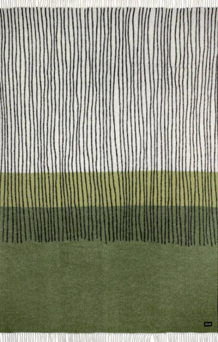 Die weiche Decke aus 100 % skandinavischer Wolle ist nicht nur sehr kuschelig: Durch die auffälligen Streifen und den bunten Akzent ist die Decke ein Statement in jedem Schlafzimmer.