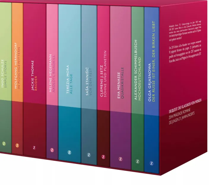 Welche literarischen Stimmen werden unser Jahrhundert prägen? Die ZEIT-Edition »Die Klassiker von morgen« möchte diese Frage beantworten: Zusammen mit Autor und Journalist Florian Illies bringt DIE ZEIT die 10 wichtigsten deutschsprachigen Romane der Gegenwart heraus.