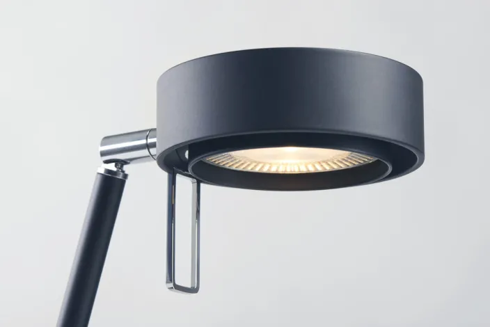 Modern, elegant und mit leistungsfähigen LEDs ausgestattet, sorgt Tischleuchte »Pure von mawa design für elegante und beste Arbeitsatmosphäre bei Ihnen zuhause. Exklusiv für die ZEIT erscheint die Leuchte nun in einem dunklen Blau. Ausgestattet mit einem neuen Lichtkopf, der nicht nur eine leistungsfähigere LED, sondern auch ein klareres und ruhigeres Design besitzt. Durch seine besondere Bauweise hat dieser eine ausgezeichnete Kühlleistung. Dank des breiten Abstrahlwinkels der »Pure« wird auch dicht über der Arbeitsfläche ein weiter Bereich gleichmäßig ausgeleuchtet. Speziell entwickelte, verchromte Gelenke sorgen für höchste Flexibilität. Der Lichtkegel ist auch nach stundenlangem Betrieb durch den verchromten Spezialgriff einstellbar, denn der Ring um den inneren Leuchtenkopf bleibt angenehm kühl. Im oberen Bereich des Leuchtenstabes ist ein Tastschalter mit Memoryfunktion integriert. Der Kopf der Leuchte ist um 360° dreh- und um 90° schwenkbar, der Leuchtenstab ist um 22° verstellbar.