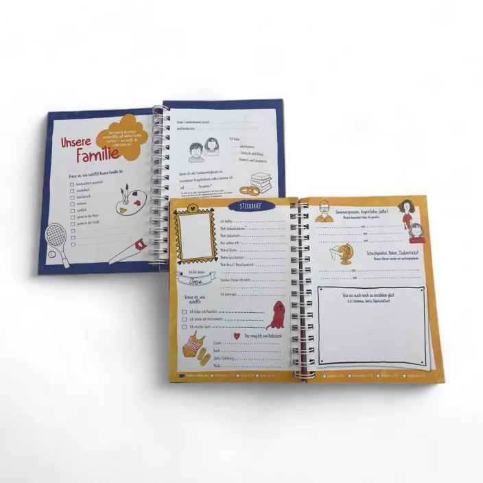 - Familie erforschen: Mit dem eigens konzipierten Eintragebuch »Meiner Familie auf der Spur« können Ihre Kinder ihre eigene Familiengeschichte erforschen.