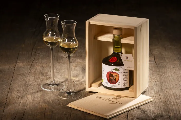 Limitierter Edelbrand aus der Freiherr von Poschinger Edelbrandmanufaktur. Exklusiv für das Jubiläum der ZEIT haben wir in Kooperation mit der Freiherr von Poschinger Edelbrandmanufaktur den Edelbrand »Alter Apfel« kreiert. Der exklusive Sonderbrand ist auf 100 Flaschen limitiert und basiert auf der Apfelsorte »Böhmischer Brünnerling« – eine alte, fast vergessene und ausgestorbene Apfelsorte. Die Apfelsorte ist optimal an das raue Klima der böhmisch-bayerischen Mittelgebirge angepasst und nur noch in wenigen Exemplaren im Gutsobstgarten zu Oberfrauenau vorhanden. Der Brand wurde mehrere Monate in einem speziellen Fass gelagert und ausgebaut.